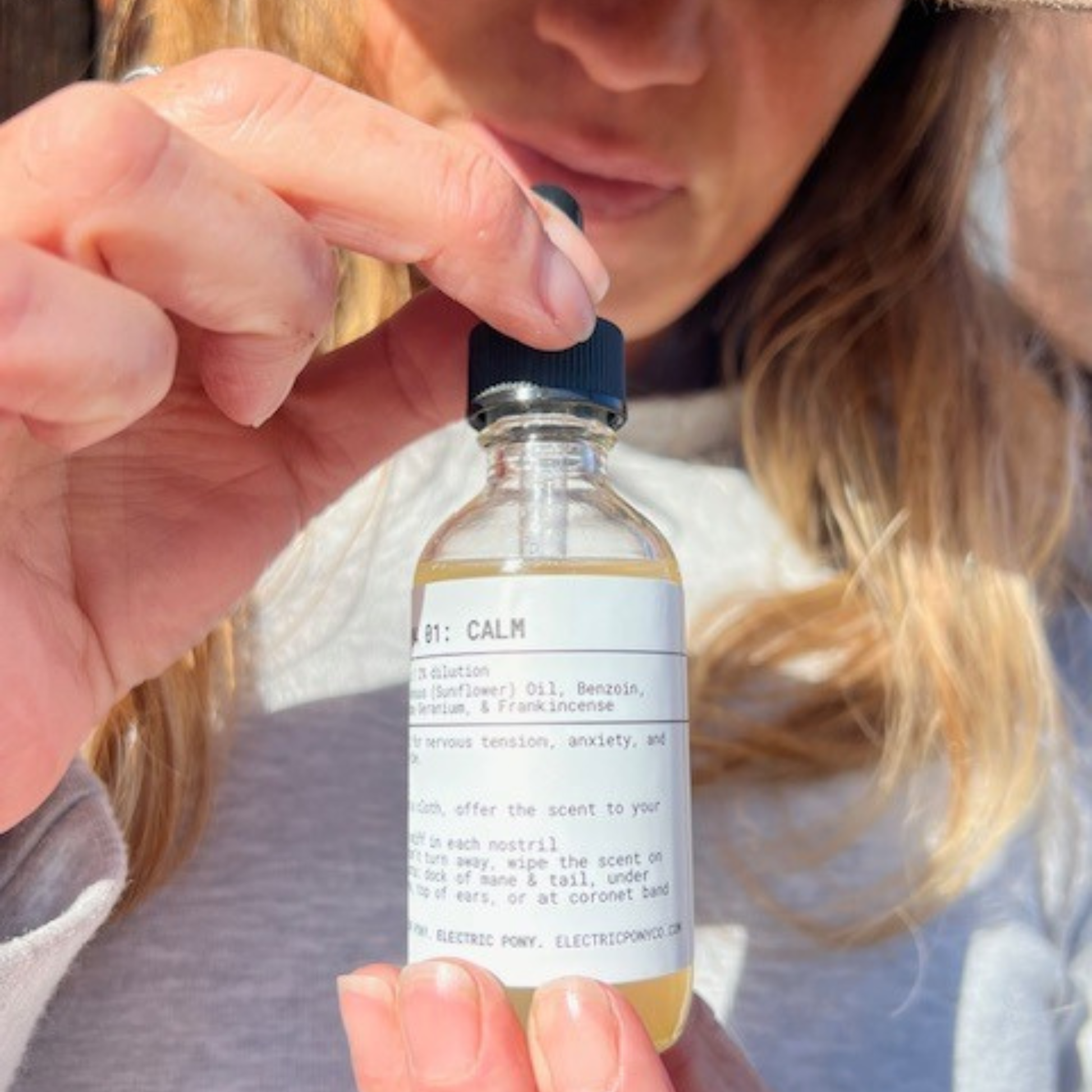 PonyAROMA 01: CALM is made with cold-pressed, high-oleic Sunflower oil blended with Jen's blend of oils that offer deep grounding and a sense of calm.